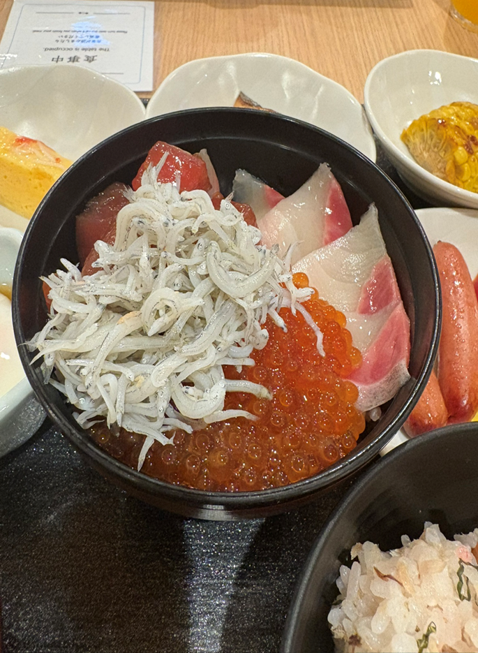 翌朝は、自分で具材をのせられる海鮮丼の朝食。