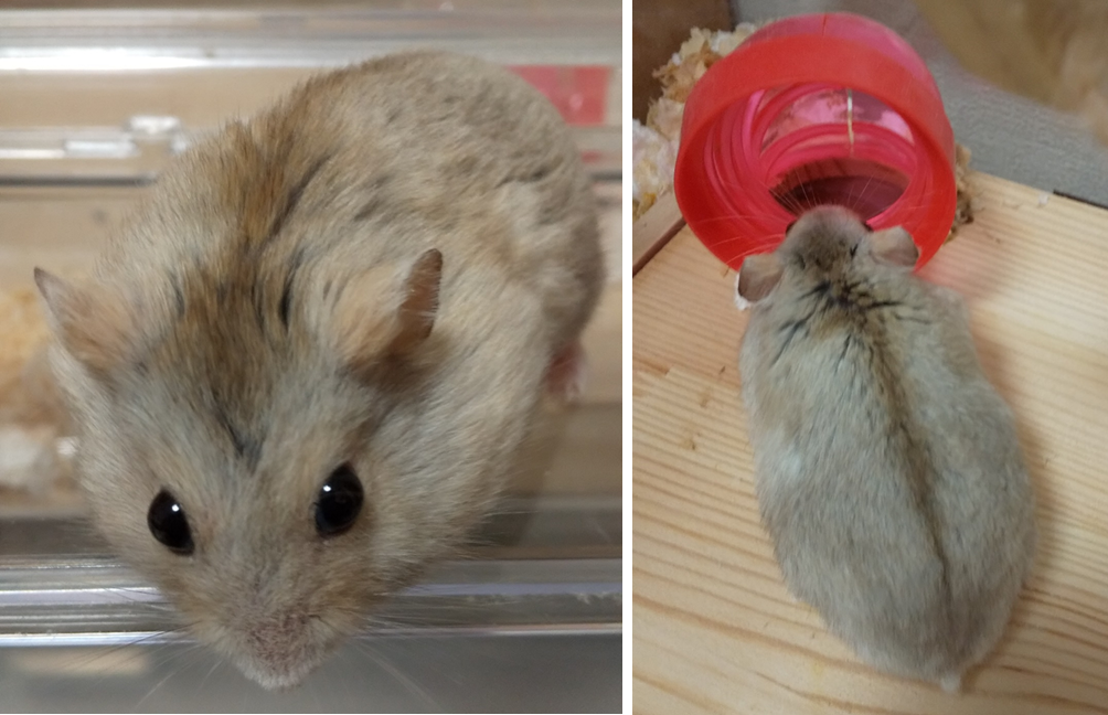 去年から飼っているジャンガリアンハムスターの男の子で、チャームポイントは真ん中の