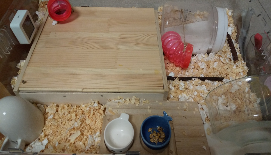 その後は、ハムスターのストレスにならないように気づかいながら砂浴び場を作り、ついに彼の