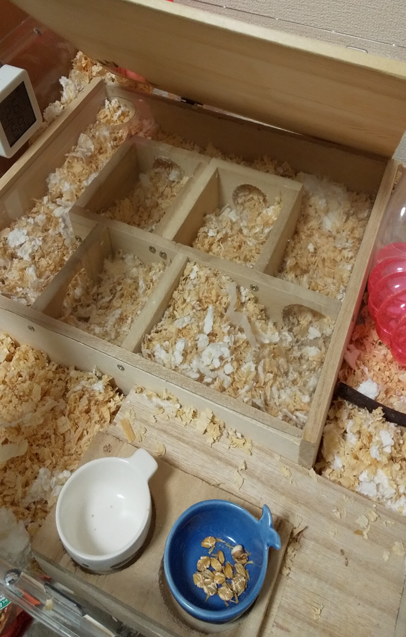 なので、飼育ケースの中に自作の巣箱を作ってあげることにしました。