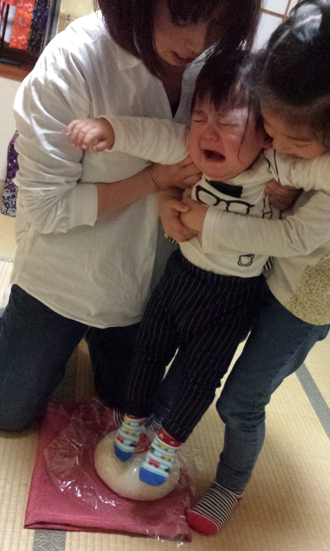 4月で10歳となります。妻と娘に支えられながら一升餅の上に立ち、大泣きしていた息子が今では
